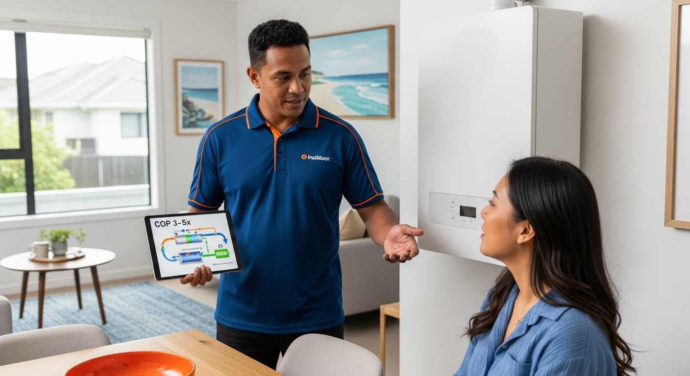 Heat pumps operate differently by functioning as heat movers. They use a small amount of electricity to circulate refrigerant, which absorbs heat from the outside air and releases it indoors. Even on a crisp Auckland morning, there is enough ambient heat in the air for this process to work effectively. This allows modern units to achieve a COP of 3.0 to 5.0, providing three to five units of heat for every unit of electricity consumed. You can find a detailed breakdown of this refrigeration cycle in our guide to the science behind year-round comfort.